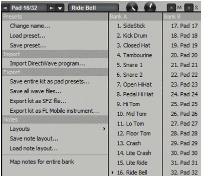 - Map notes for entire bank – в этом случае будут назначены ноты для всего банка т.е. каждая MIDI нота, что будет воспроизводится у вас в контроллере будет автоматически связана с последующим пэдом FPC (пэды 1-16 или 17-32 в секвенсоре).